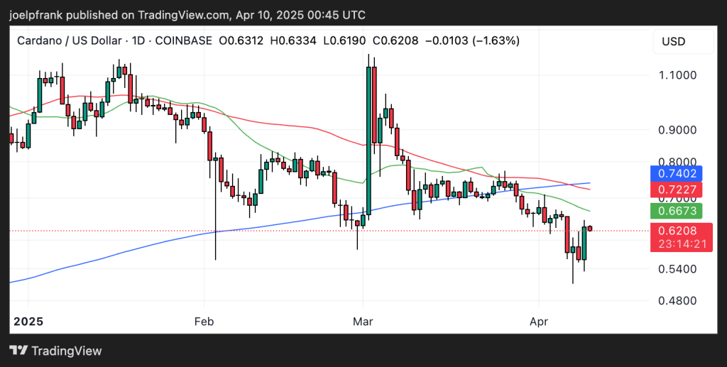 Last around $0.63, the Cardano price is up a stunning 23% from its Monday lows around $0.50.